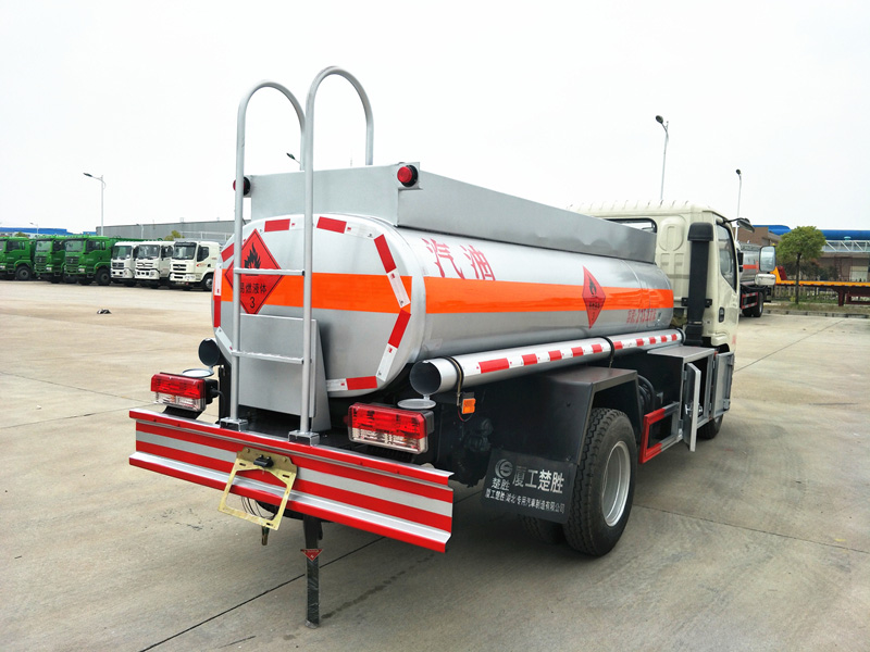 B、罐體標配為單倉、山東齊魯油泵,泵箱配歐標拉手鎖,帶歐標罐口、海底閥,兩個自流閥,根據(jù)實際情況和當?shù)芈鋺粽呖杉友b下裝油口,探桿與探桿座,以及油氣回收裝置。