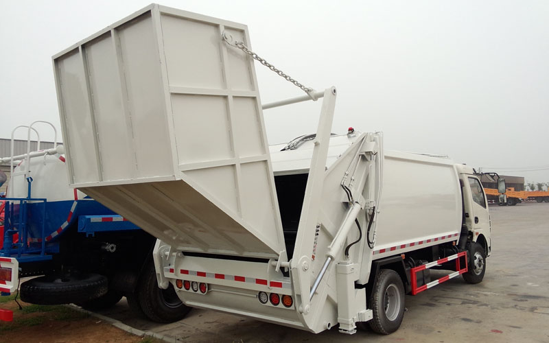A 、上裝配置: 垃圾車箱有效容積:8立方米,材料采用Q345高強(qiáng)度錳鋼板材制作,可選用弧形廂或矩形廂,9支液壓油缸制動(dòng),不帶副壓板,液壓控制操作系統(tǒng)為PLC電動(dòng)控制和手動(dòng)控制,后翻轉(zhuǎn)機(jī)構(gòu)可選裝掛鐵桶、掛塑料桶、三角落地斗、全密封斗、擺臂斗等,填充器底部設(shè)計(jì)有污水收集箱,車箱內(nèi)的污水可流入其中,在卸垃圾時(shí)可通過球閥排出,減少二次污染。采用國(guó)內(nèi)知名品牌液壓油缸(進(jìn)口油缸密封圈)、液壓油管、多路閥、平衡閥、油泵、進(jìn)口PLC電動(dòng)控制系統(tǒng)。